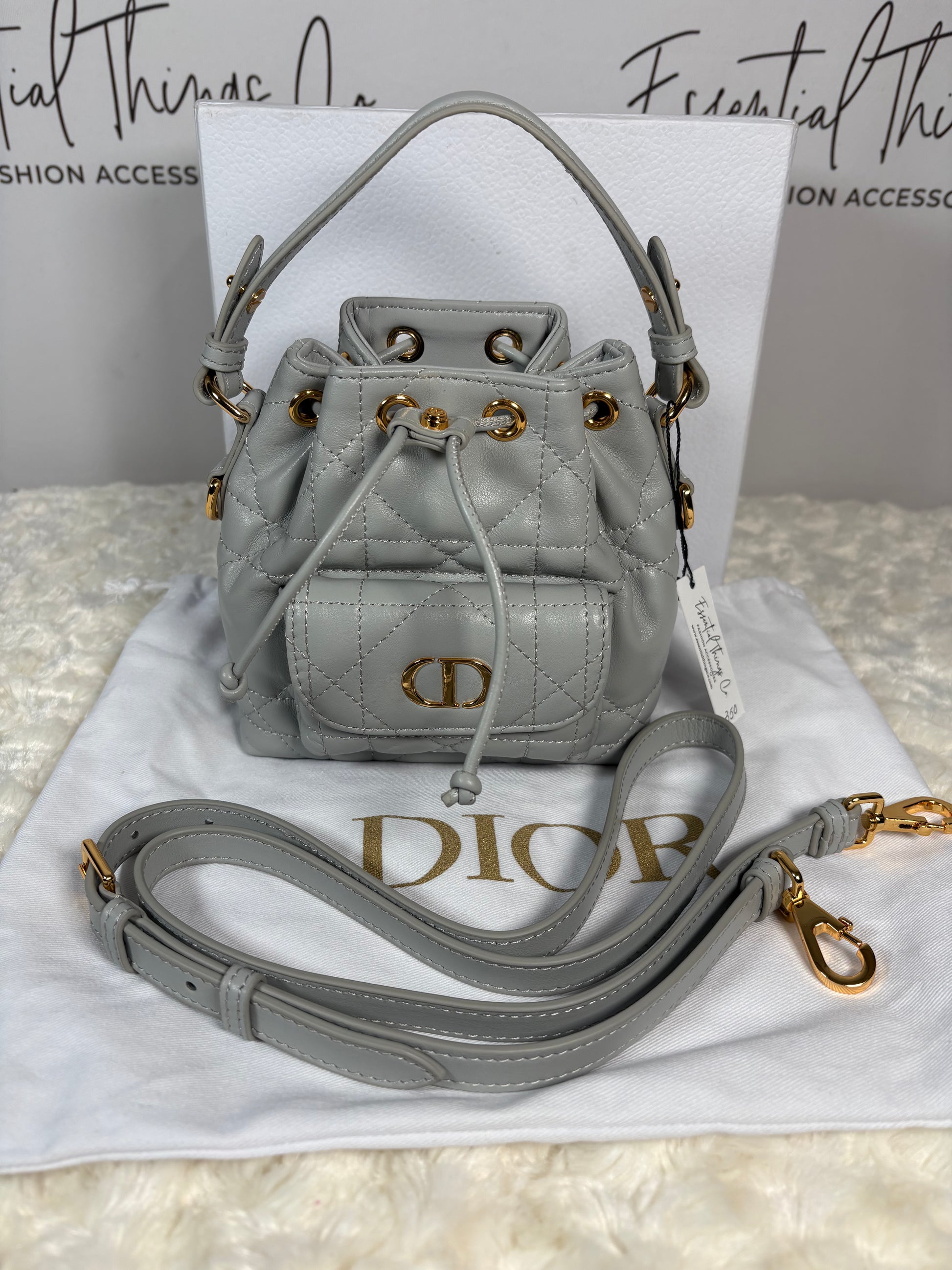 Take your style to the next level with the CD Caro Bucket! Made from genuine leather and featuring stunning gold hardware, this bucket bag is a must-have for any fashionista. The unique stitching adds an extra touch of flair. Plus, with the optional shoulder strap, you can rock this bag any way you want!